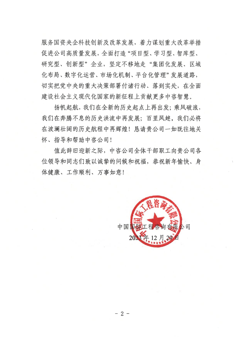 中國國際工程咨詢有限公司感謝信